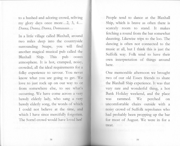 Local Suffolk author Sue Thompson has written and published two books about her life in Suffolk since she and her husband Pete moved into our area from Southend in 2013. In addition to general observations about life in Suffolk, Sue frequently focuses endearingly on the local amateur folk scene that many of us know and love.