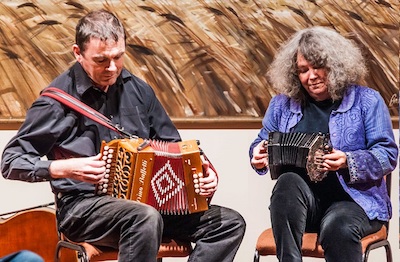 On the day over thirty participants turned up, mostly playing melodeons, and they settled down to a morning workshop run by Mary and Anahata which concentrated on learning tunes by ear and very much in line with the main aim of the day which was ‘Playing together’.