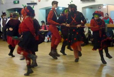 The whole event was held in the Rifle Hall becoming something akin to a Morris Ale. For those who have never attended an Ale: it’s a bonding party for Cotswold Morris sides who gather in some far flung hall in winter to consume vast amounts of beer and food and dance through every dance they know either until they drop or midnight. Usually midnight comes first … though as Morris sides get older …