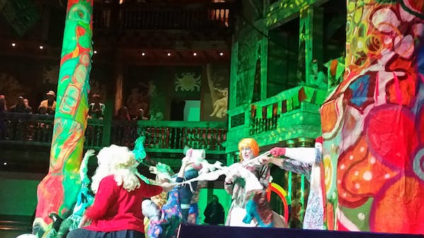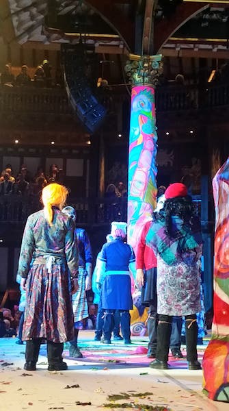 This was the inspiration behind the formation of the Norwich Kitwitches Molly side. Like many of the traditional sides we do not start practising until November and only dance out in December and January. Being a 21st century Molly side, we are mixed and therefore the women have to dress as men, dressed as women. Perhaps it was this fact that led Andrew Logan to ask us to dance in the 2018 Alternative Miss World, whilst the judges were making up their mind as to which of the contestants had won the coveted crown. This was the reason why we broke with tradition to dance in October on stage at the Globe. It was combined with dancing on the South Bank and outside the Globe as the audience was entering. Luckily it was fine weather. We stood at the side of the stage for most of the show and our pantomime dame outfits, wigs and make-up did not look out of place amongst an audience of alternative Londoners. We had been asked to provide ten minutes entertainment at the final interval before the winner was to be crowned Alternative Miss World 2018. There was time for two dances and the stage at the Globe was large enough for two sets as well as the musicians. We started with the traditional Comberton Molly dance ‘The Special’ published by Cyril Papworth. It is a linked handkerchief dance but instead of handerchiefs the Kitwitches have always used bras which seemed very appropriate for that evening. We have also added a final figure – the lock – similar to Rapper sides, but with underwear instead of swords and inspired by the Illmington Maid of the Mill dance. It was well received and we finished off with one of our own Norwich dances, ‘The Witch’ with its now, fairly traditional zombie ending. It was a rare but thoroughly enjoyable outing to the capital, but now we need to prepare ourselves for Plough Monday and the winter weather in Norfolk.