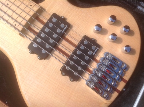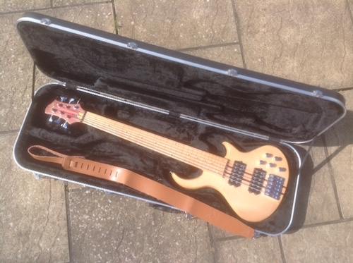 CJM solid 6-string fretless bass with an extra long Nash Guitars case from USA.