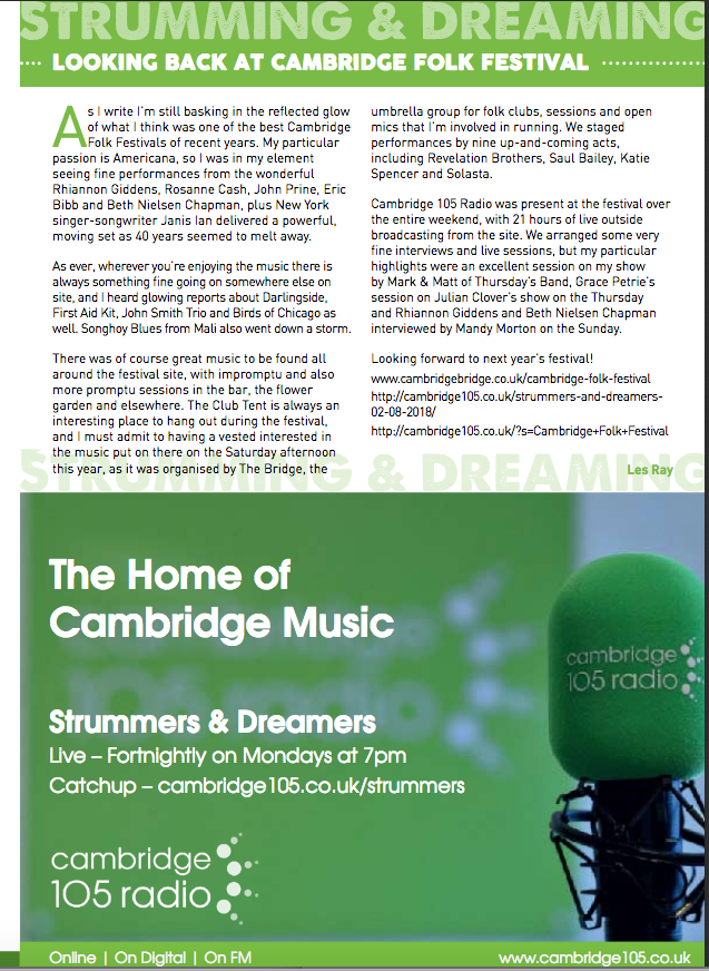Les Ray, who writes a regular column for Unicorn magazine, has agreed to become our Cambridgeshire correspondent. In practice this means he will write reviews of relevant events and CDs. We will also share the column he writes for Unicorn. Les also presents Strummers and Dreamers, a fortnightly folk programme broadcast fortnightly. See the foot of his first contribution for broadcasting details.
